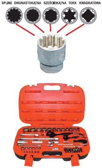 Ja unikałbym takich wynalazków. Nasadki do wszystkiego mają zapewne taką tolerancje pasowania że objadą zapieczone śruby(nawet 'zwykłym' dwunastokątnym się to zdarza.), polecam normalne sześciokątne. Śrub na nasadki(nie trzpieniowe) XZN, spline, czy nawet E-Torx nie spotyka się często. Grzechotki z plastiku? Dziękuję, wybieram kutą stal.