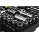 Szukasz wszechstronnego zestawu narzędzi do swojego warsztatu lub garażu? Prezentowana kompletacja JCB-4941-5 z 94 elementami to idealne rozwiązanie zarówno dla majsterkowiczów, jak i profesjonalistów. Bogaty wybór akcesoriów wykonanych z wysokiej jakości stali chromowo-wanadowej (Cr-V) gwarantuje trwałość oraz ułatwia wykonywanie nawet skomplikowanych zadań. Dodatkowo narzędzia stworzono w sposób ergonomiczny, by praca przy ich wykorzystaniu była bezpieczna, a także wygodna. Wszystkie elementy mieszczą się w solidnej walizce z wytłoczeniami, co pozwala nie tylko na łatwe ich przechowywanie, ale także transportowanie.
