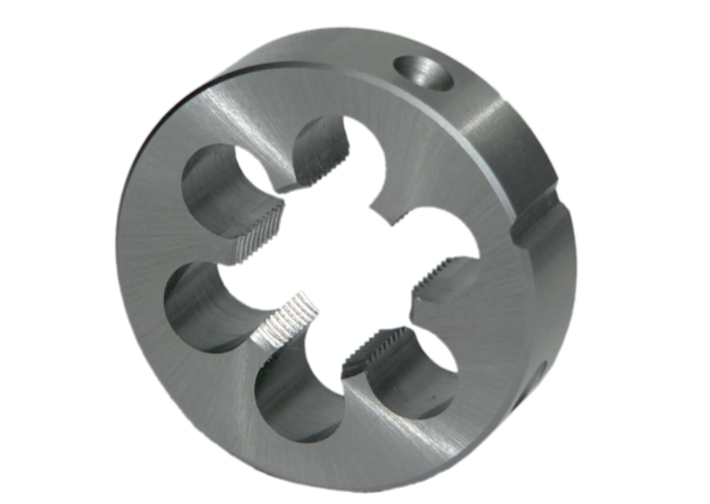 Narzynka HSS 800 zgodna z DIN-EN 22 568 nacina gwint metryczny zwykły. Materiał, z jakiego została zrobiona narzynka - wysokowydajna stal szybkotnąca - charakteryzuje się wysoką odpornością na zużycie. Narzynka jest przeznaczona do stali konstrukcyjnych węglowych, automatowych i niskostopowych o wytrzymałości 600MPa<=Rm<=800MPa. Przed użyciem narzynki należy na elemencie obrabianym wykonać sfazowanie 45° w celu uniknięcia większych obciążeń krawędzi tnących. Narzynka powinna być ustawiona prostopadle względem śruby. Aby obciążenie zębów podczas obróbki było niższe, średnica pręta musi by zawsze mniejsza niż średnica zewnętrzna gwintu na narzynce. Dane techniczne: