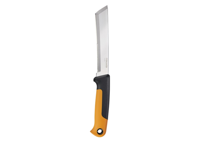 Nóż do zbiorów X-series K82 Fiskars 1062830 do warzyw i owoców o grubych gałązkach i łodygach. Płaska końcówka ostrza ze stali nierdzewnej zapewnia szybkość cięcia, a ząbkowana krawędź przecina włókniste rośliny. Przedłużony uchwyt SoftGrip pozwala docierać do przewężeń, a ergonomiczna rączka zapewnia komfort użytkowania.