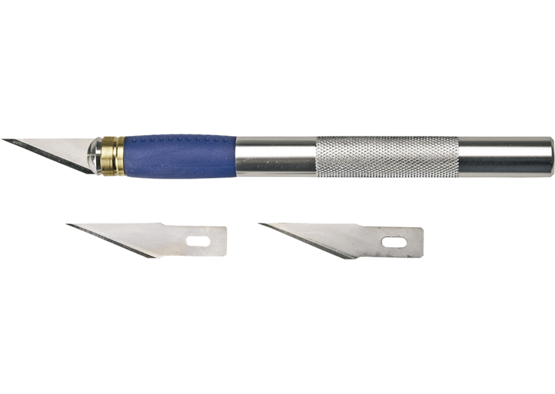 Nóż modelarski TOPEX (nr ref. 17B703) przeznaczony do wykonywania precyzyjnych cięć. Korpus wykonany z metalu z radełkowanym uchwytem. Gumowy kołnierz przy ostrzu pozwala na pewny chwyt, czy zwiększa komfort pracy. W zestawie znajdują się 3 ostrza. Marka TOPEX skierowana jest do majsterkowiczów.
