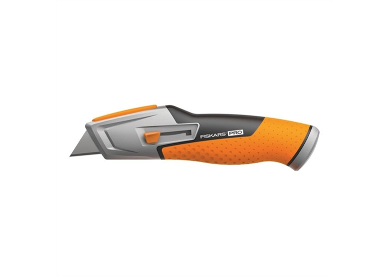 Nóż uniwersalny CarbonMax™ z chowanym ostrzem Fiskars 1027223 cechuje się bardzo wysoką ostrością cięcia oraz komfortem pracy. Metalowy korpus jest odporny na uszkodzenia oraz zapewnia bardzo dobre wyważenie w dłoni, które poprawia manewrowość. Nóż posiada praktyczny schowek na 5 zapasowych ostrzy. Posiada specjalną blokadę, która uniemożliwia cofanie się ostrza.