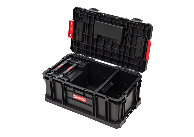 Z komory skrzyni można korzystać na kilka sposobów. Użytkownik ma bowiem do dyspozycji wyjmowaną przegrodę oraz dwa wyjmowane organizery Multi, które może dowolnie umieszczać w skrzyni lub całkiem wyjąć, jeśli potrzebuje maksymalnie dużej przestrzeni do przechowywania. Każdy z organizerów jest również wyposażony w wyjmowane przegródki, dzięki czemu bez problemu można posegregować drobny osprzęt i w razie potrzeby zabrać cały zestaw na miejsce pracy.
