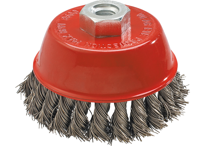 Szczotka druciana GRAPHITE (nr ref. 57H582) o średnicy 80mm, wykonana z drutu ze stali nierdzewnej o grubości 0.5mm. Wzmocniona konstrukcja korpusu pozwala na wydajne czyszczenie konstrukcji stalowych ze stali nierdzewnej i stali kwasoodpornej. Mocowanie przystosowane do współpracy ze szlifierkami kątowymi.