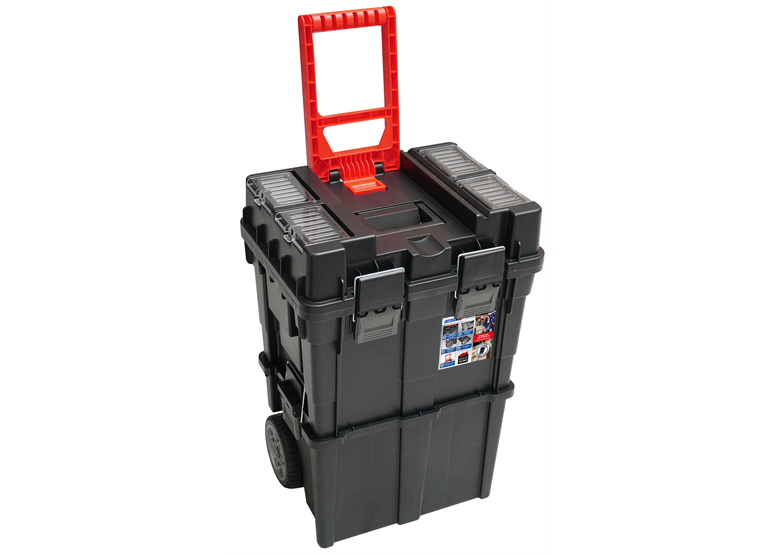 Warsztat na kółkach Dedra N0201 sprawdza się idealnie podczas pracy wymagającej ciągłego przemieszczania się. Dzięki wysokiej pojemności skrzynia idealnie sprawdzi się jako mobilny warsztat z podstawowymi narzędziami i elementami montażowymi. Skrzynia posiada wiele praktycznych przegród oraz specjalny organizer na pokrywie. Całość jest bardzo łatwa w transporcie, dzięki mocnym gumowanym kolom oraz ergonomicznej rączce. Skrzynia cechuje się bardzo wysoką odpornością na uszkodzenia i uderzenia.