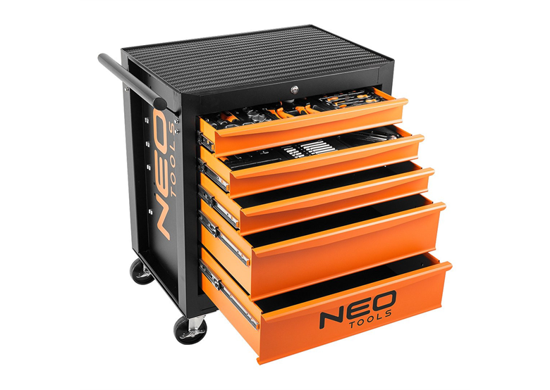Wózek narzędziowy Neo 84-214-6 to profesjonalny mebel, który doskonale sprawdzi się zarówno w warsztatach, jak i w przydomowych garażach. Dostarczany ze 117 starannie dobranymi narzędziami pozwala na natychmiastowe rozpoczęcie pracy, bez potrzeby kompletowania dodatkowego wyposażenia.