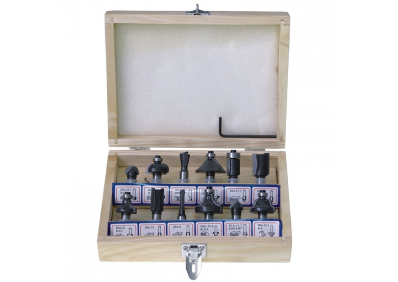Zestaw frezów z trzpieniem 8mm Dedra 0780 znajdzie zastosowanie przy pracy w drewnie. Zestaw składa się z 12 sztuk frezów kształtowych. Osprzęt pasuje do frezarek górnowrzecionowych z tuleją zaciskową 8mm. Dzięki różnym rodzajom frezów, możliwe jest obrabianie drewna na wiele sposobów. Cały zestaw jest dostarczany w praktycznej i eleganckiej kasecie z drewna.
