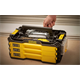 Niewątpliwym atutem produktu FMMT98107-1 jest praktyczna skrzynia wyposażona w trzy szuflady. Komory można całkowicie wyciągnąć i ustawić w innej kolejności. Ich zawartość, zobrazowana na frontalnej etykiecie, umiejscowiona jest w dedykowanych miejscach, co gwarantuje porządek i dobry przegląd narzędzi, a także łatwe zorientowanie się w ewentualnych brakach. Używane akcesoria lub demontowane rzeczy można odkładać na górną pokrywę, wyposażoną w przegrody. Walizkę z całym sprzętem przenosi się jedną ręką dzięki solidnej rękojeści składanej. Moduł jest kompatybilny z innymi elementami PRO-STACK, a także systemem TSTAK. Wyjątkową funkcjonalnością jest możliwość wciskania miedzy boczne ożebrowanie małych pojemników na bity, np. FMMT19101-0.